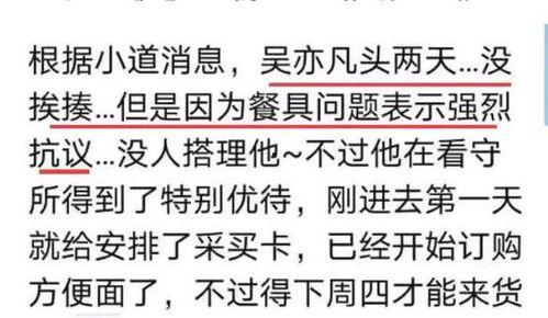 据网友透露,吴亦凡在狱中的生活并不像大家想象的那样轻松。视频中,他穿着朴素的囚服,面容憔悴,显然已经承受了很大的压力。在视频中,吴亦凡透露了自己在狱中的生活细节,包括饮食、作息、锻炼等方面。
